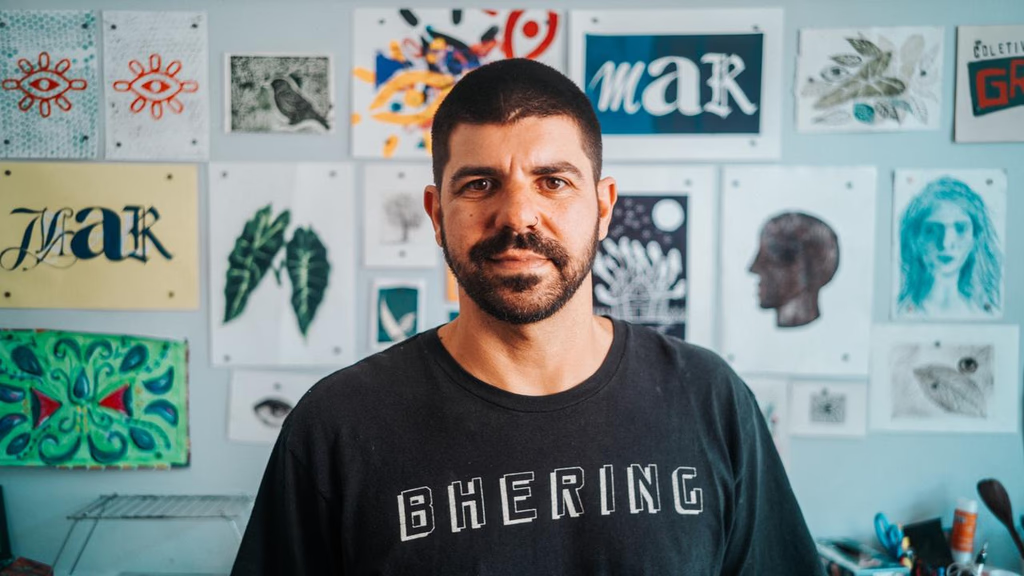 Bruno Joka é artista visual e designer, iniciou sua jornada nas artes em 2023 passando pelos cursos de Xilogravura e Serigrafia Não Fotográfica na Escola de Artes Visuais (EAV) do Parque Lage.